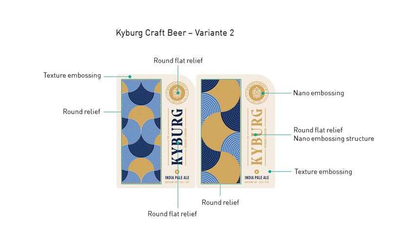 Craft beer is an artisanal beer brewed in small quantities. Craft beers are increasingly found on the shelves, which creates the need for high-quality packaging in order to position them in the market. Digital technology is generally best suited for producing such a small series, but this does not mean that high-quality embellishment and haptic effects have to be sacrificed. In the combination of analog and digital technology, it is possible to produce small runs economically, as in this case.